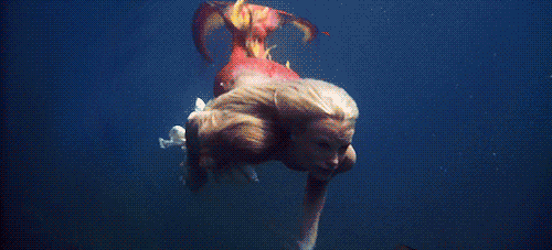 Mídia: São mulheres vestidas com longos e delicados vestidos, comandando ondas ou nadando entre golfinhos.